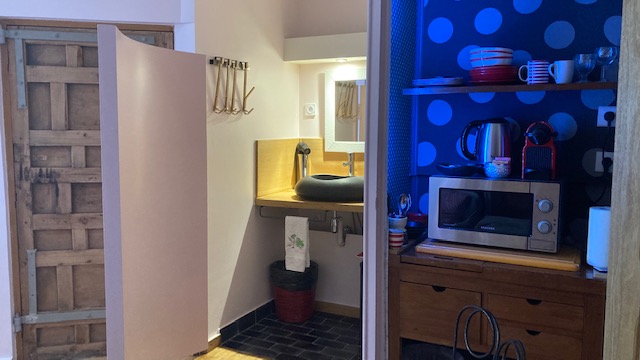 Une salle d'eau avec douche à l'italienne, 1 dressing, un petit espace de préparation de petit-déjeuner, un lit en 160cm.