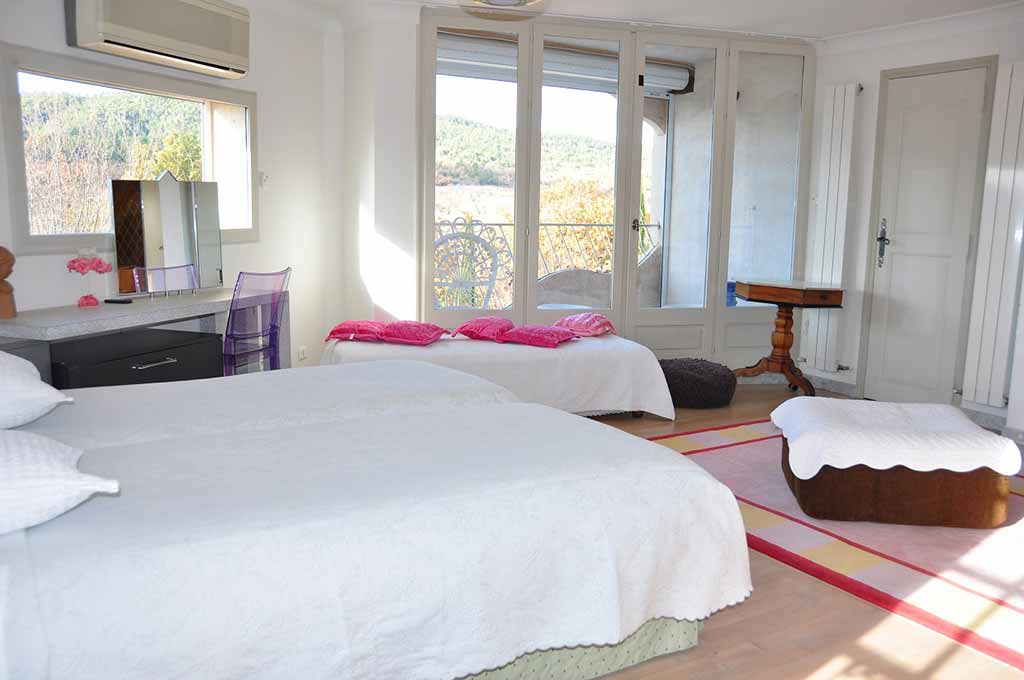Suite de 45 m² offrant une grande chambre familiale avec 3 lits indépendants de 90 cm (dont 2 pouvant se rapprocher), une salle de bain, un WC, un dressing et une climatisation.